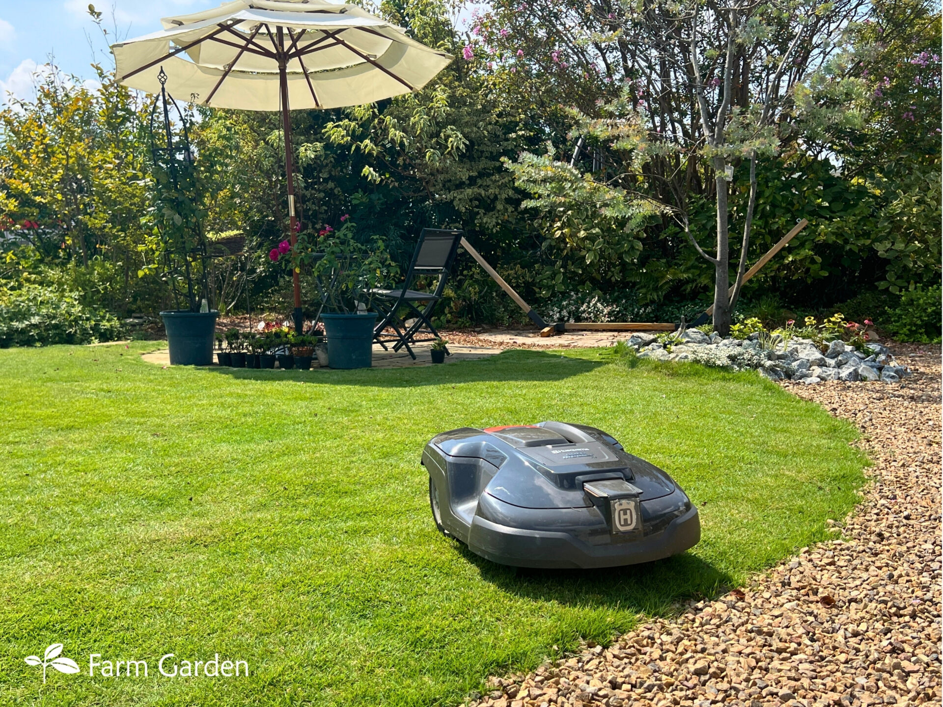 そんな芝生管理を楽にしてくれるのが、ハスクバーナ社のオートモアに代表されるロボット芝刈り機 です。