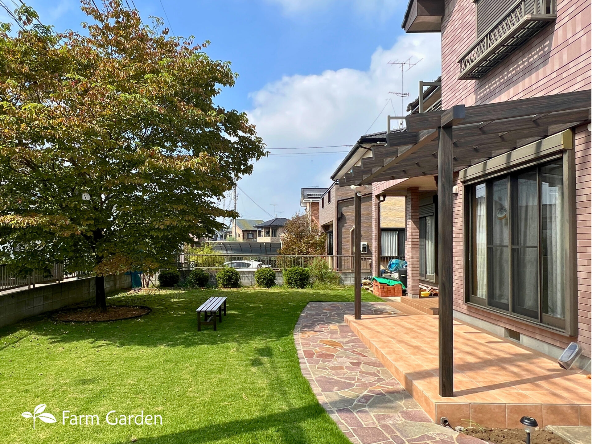 青空の下、家族と過ごす時間がさらに楽しくなる、開放感あふれるアウトドアリビング空間が完成しました。